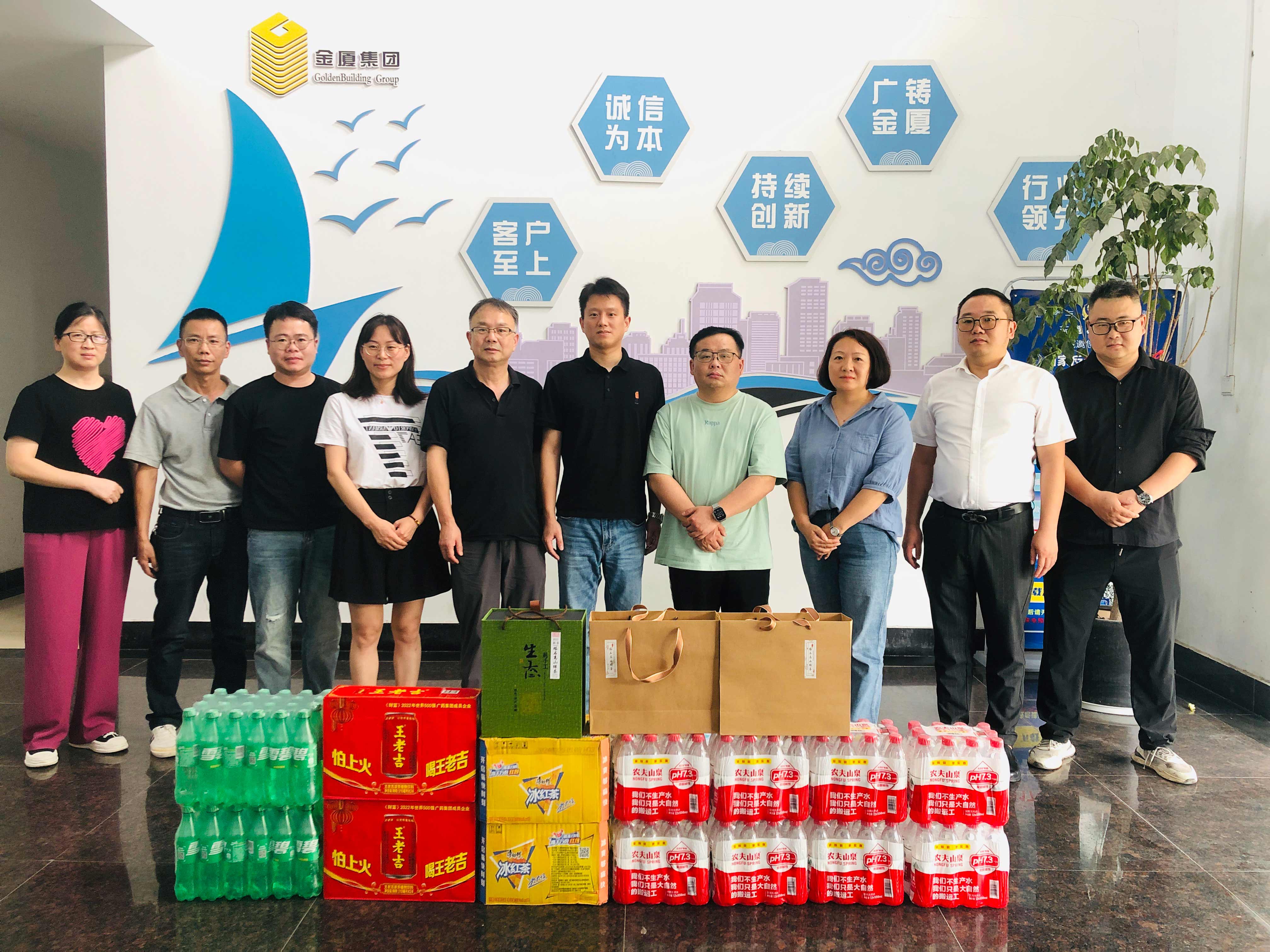 為切實(shí)保障一線員工的身體健康,將集團(tuán)“以人為本”的理念落到實(shí)處,持續(xù)推進(jìn)“幸福金廈”建設(shè),提升員工的凝聚力和向心力,7月10日,金廈集團(tuán)總裁傅融率集團(tuán)管理層走訪慰問(wèn)高溫下堅(jiān)守崗位、辛勤勞動(dòng)的一線員工,為他們送去清涼和關(guān)懷。