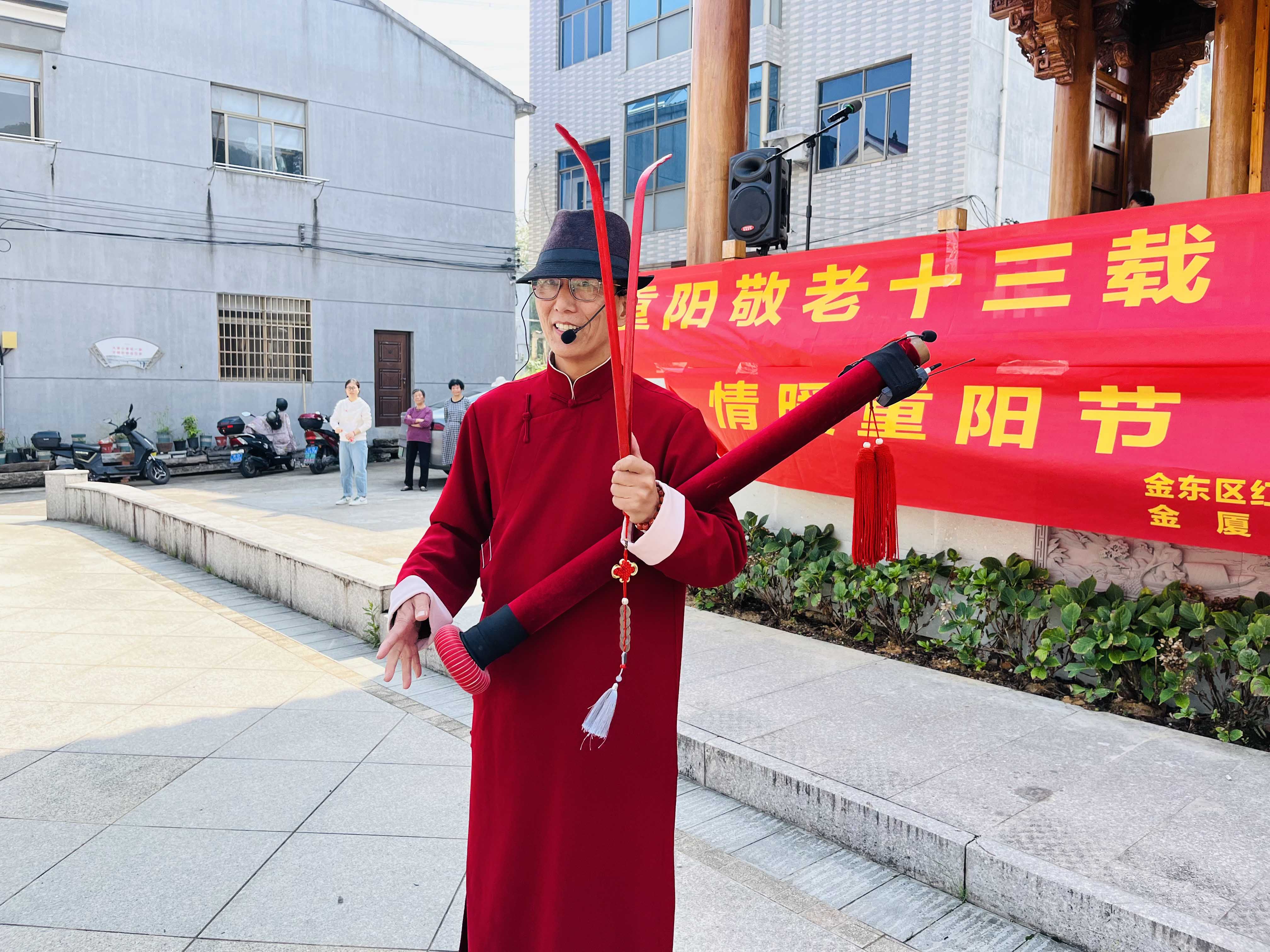 活動期間,為了豐富老人的精神文化生活,金廈特別邀請國家級非遺金華道情傳承人朱躍文先生團(tuán)隊,通過精彩紛呈的道情表演和穿插其中的文藝節(jié)目為老人們帶來了歡樂和笑聲,現(xiàn)場氣氛熱烈而溫馨。同時,為了關(guān)愛老年人的身體健康,金廈集團(tuán)聯(lián)合金東區(qū)紅十字會特意組織了公益活動,包括義診和免費理發(fā)服務(wù)。4名義診醫(yī)生和2名理發(fā)師志愿者為大家提供了專業(yè)的健康咨詢和貼心服務(wù),受到了老人們的一致好評。