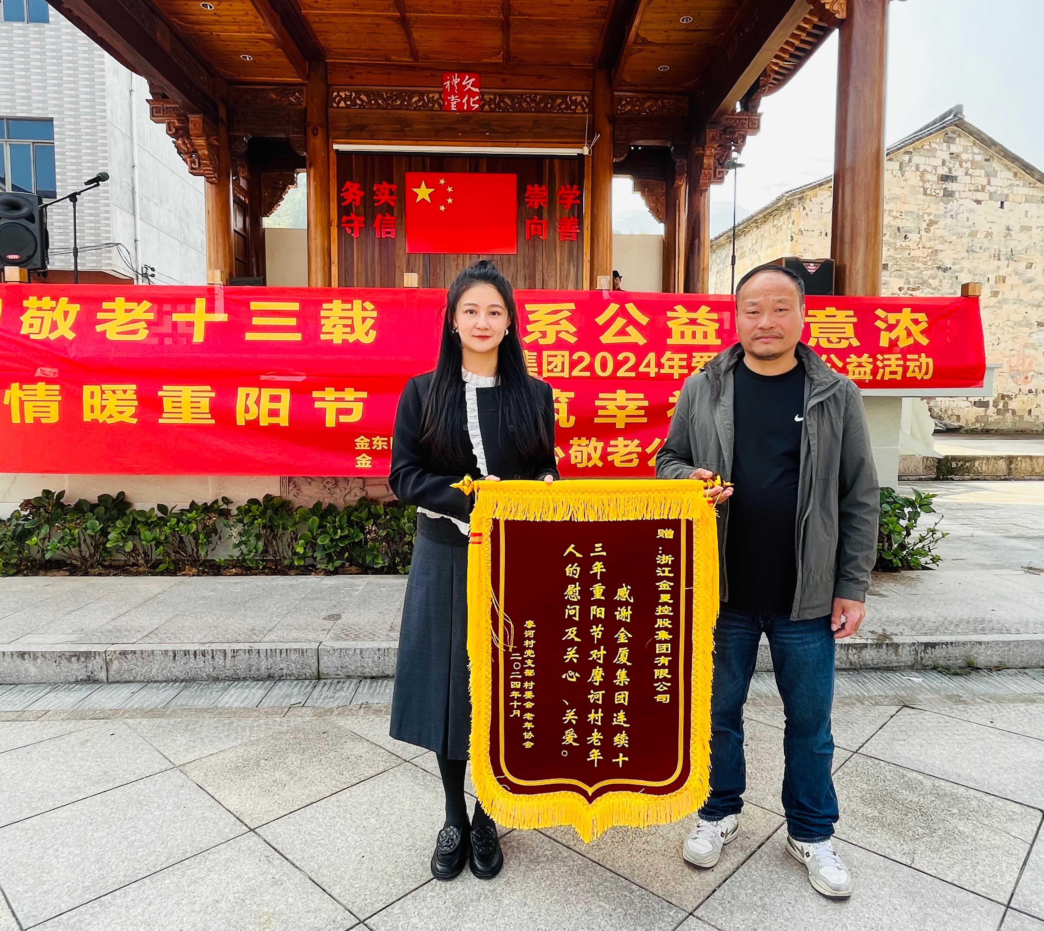 在2024年重陽節(jié)即將來臨之際,為進(jìn)一步弘揚(yáng)中華民族尊老敬老的傳統(tǒng)美德,展現(xiàn)企業(yè)的社會責(zé)任感, 10月10日上午,金華市政協(xié)委員、金廈集團(tuán)董事長蔣晨虹率集團(tuán)高管及各條線負(fù)責(zé)人一行再次前往金東區(qū)嶺下鎮(zhèn)摩訶村,開展“情暖重陽節(jié),共筑幸福夢”重陽慰問活動,為村里老年人和困難家庭送上慰問金、慰問品,并通過豐富多彩的活動為大家送上節(jié)日的美好祝福。這也是金廈集團(tuán)連續(xù)第13年開展重陽節(jié)助老公益活動。